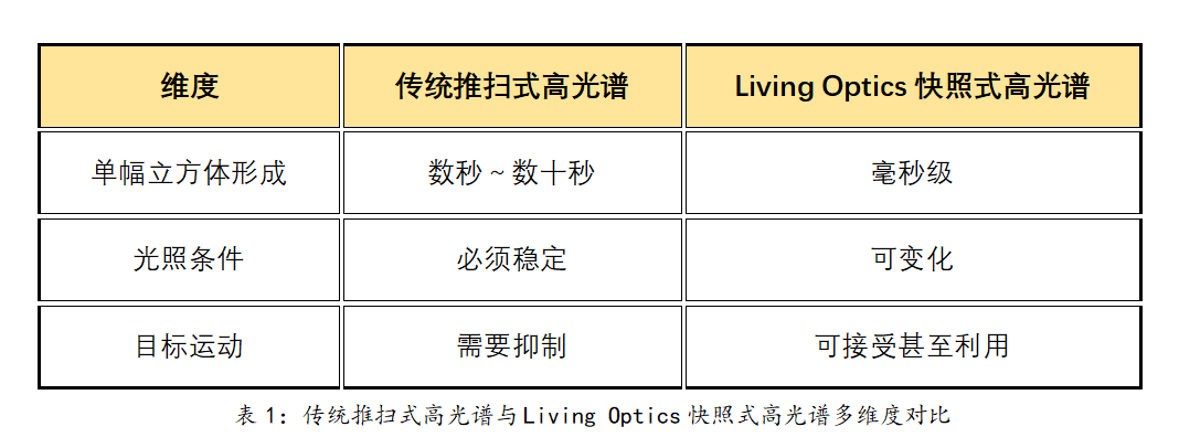 值得注意的是,Living Optics高光谱相机的出现不是简单的“多采集几帧”,而是观测逻辑的反转。传统推扫式高光谱做的是尽量消除时间,而快照式高光谱是在主动利用时间,让变化不再只是噪声也开始成为可分析、可建模的信号本身。