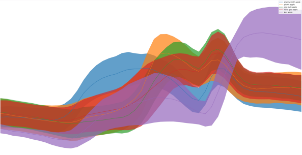 光谱的可分离性使我们能够利用简单的随机森林分类器来区分苹果品种。将光谱检测与现成的RGB分割方法相结合,仅使用100张训练图像从头开始训练,即可得到如下所示的结果。
